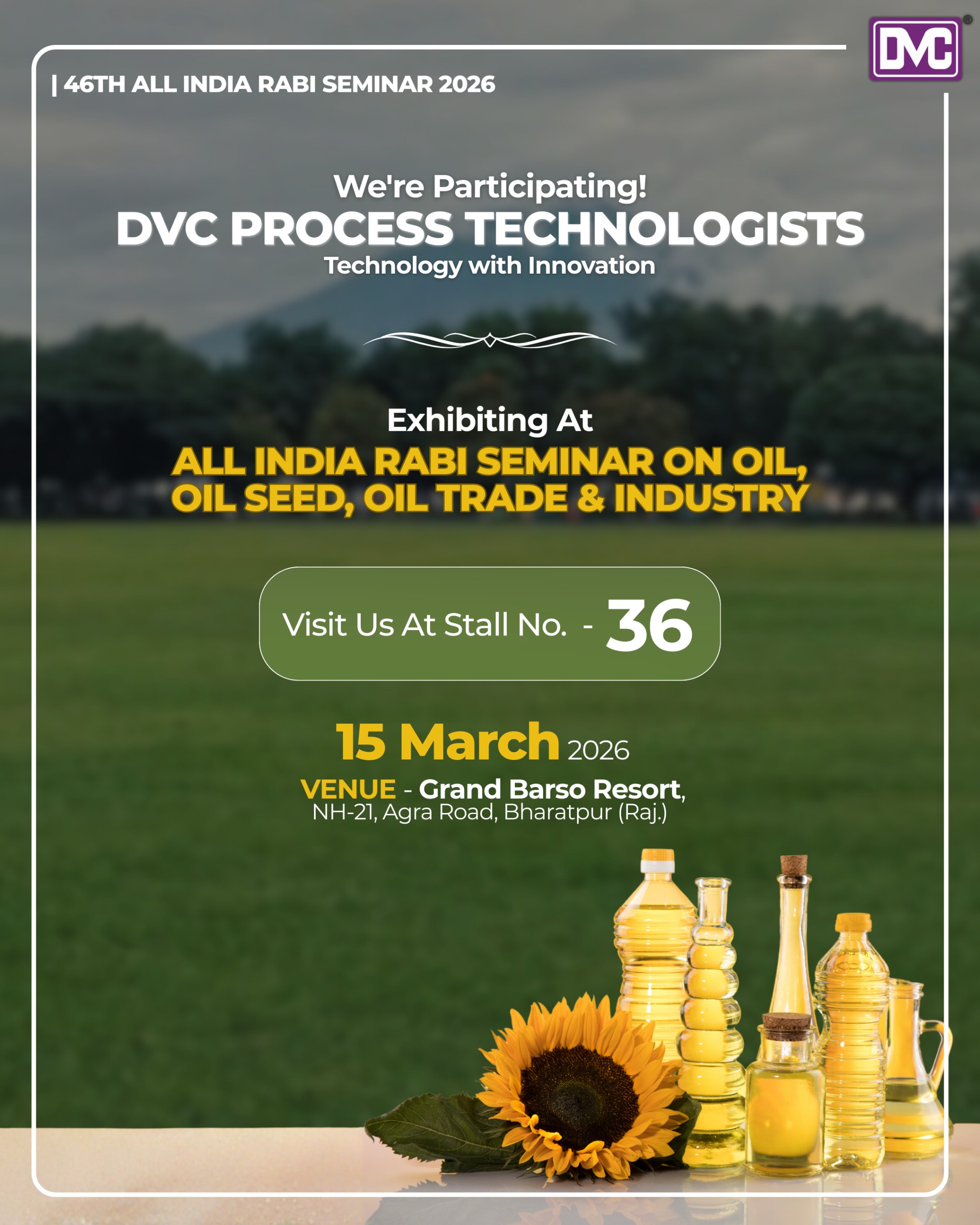 DVC Process Technologists is proud to be part of the 46th All India Rabi Seminar on Oil, Oil Seed, Oil Trade & Industry 2026!